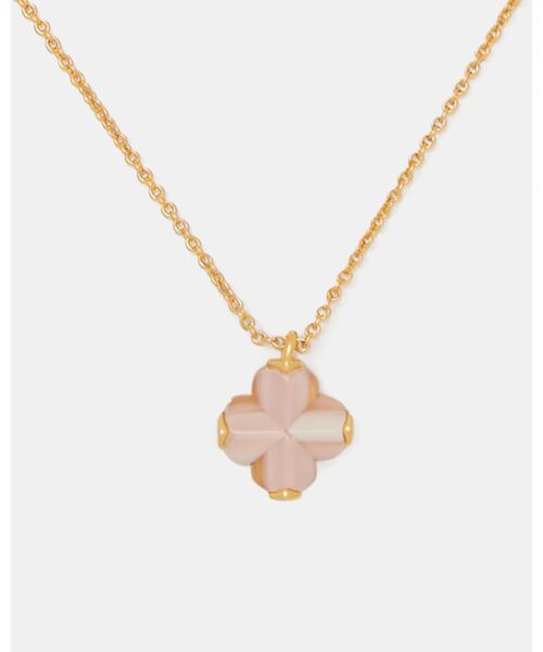 ブランドを象徴するスペードフラワーのモチーフをアセテートで立体的に象り、奥行きのあるエレガントな表情を生み出したミニペンダント。日常使いからオフィスまで、あらゆるシーンで上品な印象を演出できるアイテムです。