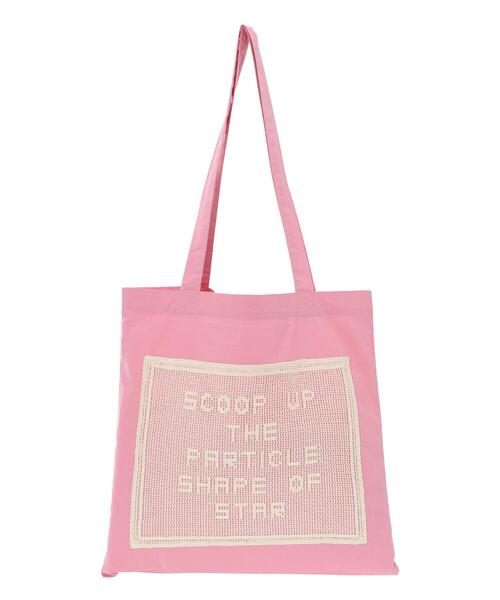 ロゴメッシュレースが愛らしいアクセントに映えるトートバッグ。A4が入るサイズで使いやすく、肩にかけられる長めのハンドルで持ち運びも楽々◎コーディネートのワンポイントとしても活躍してくれる遊び心のあるアイテムです。 ※商品画像は、撮影環境やお客様のご利用のPC・スマートフォンのモニター環境などにより実物と色味に差異がある場合がございます。
