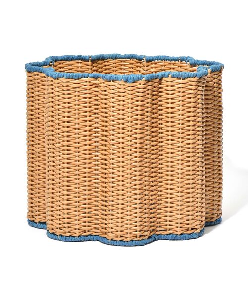 なみなみ形状が可愛らしい、お部屋のワンポイントになるバスケットです。 ルームシューズやパジャマなどを収納したり、サイズが合えば鉢カバーとして使ってもおしゃれです。 マルチに使える便利なアイテムです。 【注意事項】 ■ハンドメイドのため、色・サイズ・形状・風合いにばらつきがあります。 ■直射日光やライトに長時間照らされると変色する恐れがあります。 ■高温多湿の環境に長時間放置しないでください。 ■濡れたものは入れないでください。 ■濃色部分は摩擦により色落ち・色移りする場合があります。特に湿潤状態での摩擦にはご注意ください。 ■底面は紙製のため、過度に重いものをいれないでください。破損の恐れがあります。 ■火のそばで使用、保管しないでください。 ■素材の特性上、切れ端やささくれなどが飛び出している場合がありますので、引っ掛かりなど取り扱いにご注意ください。 ■原産国:中国