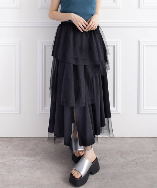 ボリューム感のある!チュールドッキングランダムスカート【デザイン】トレンド感のあるチュールがドッキングされたスカートです。ランダムな裾で動きのあるシルエットが叶います♪ウエストはゴム仕様なので、ストレスフリーにご着用いただけます!【素材感】着心地の軽いポリエステル素材伸縮性:なし/ 透け感: なし/ 裏地:なし/ウエストゴム:あり 手洗いによる洗濯可 / ウェットクリーニング可【コーディネート】きれいめなブラウスやニット合わせで大人フェミニンなコーデに仕上がります!Tシャツやジャケット合わせで、カジュアルコーデも◎【※お取り扱い上のご注意】1:モニター環境等により実際の商品と多少色味が異なって表示される場合がございます。予めご了承下さい。2:屋外で撮影された商品は、天候により多少実際のカラーと異なる場合があります。商品のカラーはトルソー(マネキン)の商品画像をご参照ください。3:濃い色の商品は、お洗濯や摩擦等による移染にご注意ください。4:末永くご愛用頂く為に、アテンションタグ・洗濯ネームを必ずご確認の上、着用又はお取り扱い下さい。5:生産時期により、色、サイズ、デザイン、素材の質感が多少が異なる場合がございます。あらかじめ御了承下さいませ。