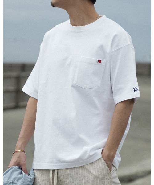 ■デザインポイント・シルエット ・胸ポケットにハートデザインのピスネームが施されたビッグTシャツ。 ・ゆったりとした身幅やドロップショルダーなど、抜け感たっぷりなオーバーサイズシルエット。 ・シンプルなデザインでボトムスを選ばず着用できるアイテム。 ・ユニセックスでの着用もおすすめ。 ■素材・生地感 ・柔らかく肌触りの良い、綿100%素材を使用。 ・程よい厚みで柔らかい着心地。