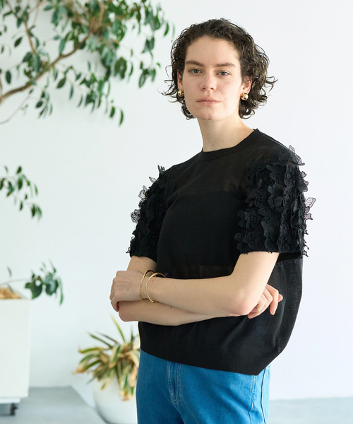 *Detail*boussole(ブソル)との特別コラボによる、華やかなシアーニット。 透け感のある軽やかなニット地に、2種類の刺繍レースを贅沢に施した一枚です。 *Coordinate* レースの存在感を活かして、ボトムはシンプルなパンツ合わせがおすすめ。 透け感を活かしたレイヤードで、女性らしい抜け感とトレンド感を演出。 【商品のお気に入り登録】 完売カラーの再入荷通知や、ラスト1点の通知、プライスダウンしたセール通知も受け取ることができます。 【ブランドのお気に入り登録】 新作や再入荷等、いち早くブランドのお得な情報を受け取ることができます。
