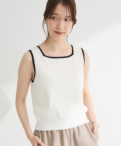 バイカラーデザインが目を惹くニットタンクトップ。肌触りのさらりとした素材で仕立て、伸縮性に優れ快適に着用していただけます。 スクエアネックが顔まわりをすっきりと演出。 メイントップとしてはもちろん、シャツやカーディガンのインナーとしても活躍する汎用性の高いアイテムです。 透け感[ややあり] 生地の厚さ[普通] 光沢感[なし] 伸縮性[あり] 裏地[なし] ポケット[なし] ※モデル着用画像は、光の当たり具合で色味が違って見える場合がございます。 ※お使いのモニター環境によって商品の色味が違って見える場合がございます。 ※こちらの商品は返品対象外です。 ●ELENCARE DUE● (エレンカーレ デュエ) ちょっとしたこだわり感と、自然体で『大人可愛い』を大切に、トレンドからベーシックまで時代のニーズに寄り添った商品を提案します。 ▼ 商品のお気に入り登録がおすすめです ▼ 商品ページ内のハートマークをクリック。完売時の再入荷や、最後の1点の通知、コーディネート画像がアップされたとき、お得なお値下げの際の通知を受ける事ができます。