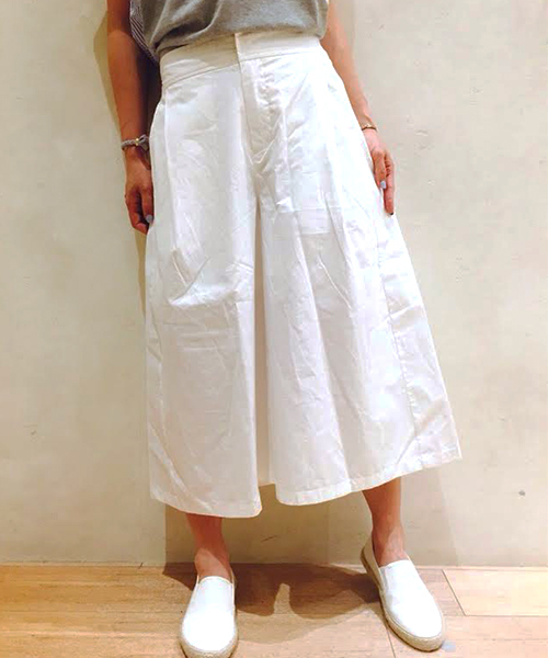 ◇今季のマストアイテム!コットンガウチョパンツ 裾にむけてふわっとしたシルエットがかわいいガウチョパンツ 今期のスタイリングに必須の1本です ハリ感のあるコットン素材なのでほどよい光沢感もあり きれいにスタイリングをまとめてくれます。 シンプルにシャツやTシャツと合わせやすいので着回しのよさも魅力です。