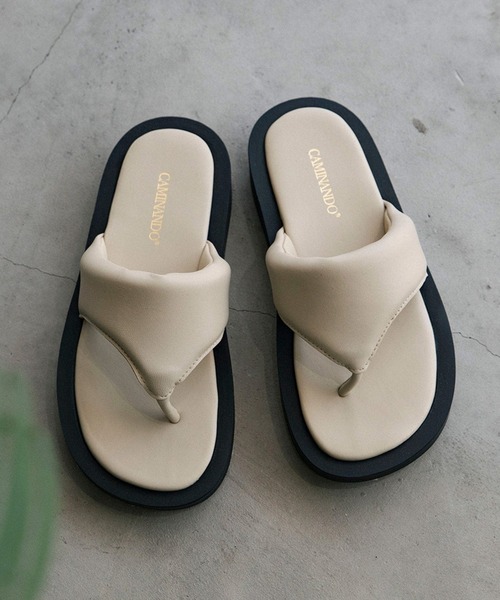 程よいボリューム感のあるパデッド仕様のトングサンダル。夏の足元のスパイスとして活躍するアイテムです。