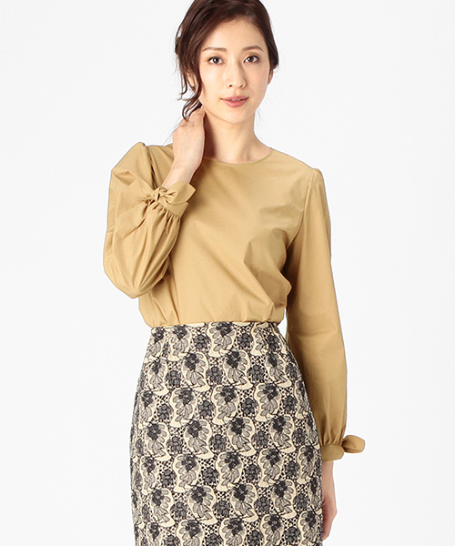 EFFE BEAMSオリジナルのプルオーバータイプのデザインブラウス。 袖口に付けられたリボンがポイント!後ろファスナー開き部分にはグログランテープをアタッチし、バックスタイルもエレガントな表情に仕上げました。ストレッチ性のある素材なので着心地も◎。 ちょっぴりデザイン性のあるベーシックアイテムだから合わせやすく、そして今っぽく仕上がります。秋冬シーズンの"はじめて買い"に、EFFE BEAMSディレクターもお勧めのひと品です。 Model : H171 B80 W58 H87(cm) Size : 38 店舗へお問い合わせの際は下記品番をお伝えください。 品番:27-11-0398-825