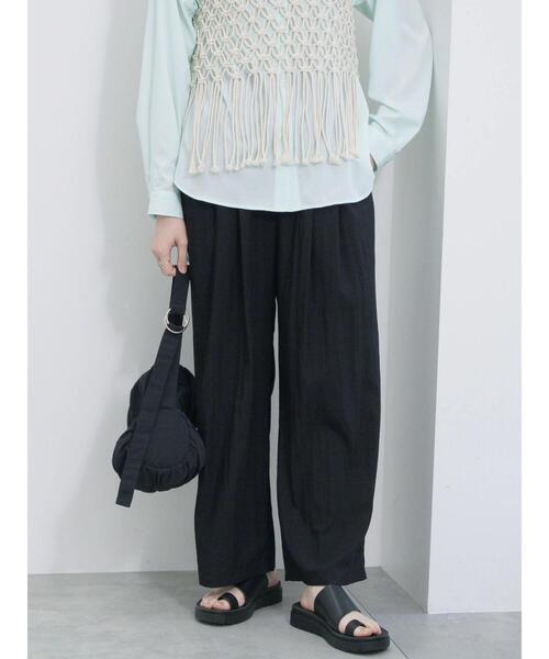 LEE6月号(5/7発売)・LEE WEB掲載商品です。爽やかに着用することができる接触冷感のタックワイドパンツ。ふれるとひんやりと感じる素材を使用し、暑くなる季節でも快適に過ごすことができます。ゆったりめのシルエットで締め付けのない着心地なのも嬉しいポイント。シンプルなデザインで着回し力も高いアイテムです。※商品画像は、撮影環境やお客様のご利用のPC・スマートフォンのモニター環境などにより実物と色味に差異がある場合がございます。【その他採寸】F ウエスト:[ゴム仕様]64cm