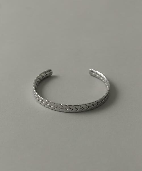 【手元に映えるシルバーバングル】 ●繊細な編み込み模様が特徴 ●スタイリッシュなオープンバングル ●肌に優しく錆びにくいサージカルステンレス素材 編み込み模様が手元にアクセントを加えるバングルです。 シンプルながらもデザイン性があり、普段使いから特別な日まで幅広く活躍します。 腐食に強く錆びにくいサージカルステンレスを採用した、金属アレルギーにも対応したアクセサリーです。 【2025 Spring/Summer】【25SS】 【サージカルステンレスとは・・】 ・通常のステンレス材よりも、より腐食に強く錆びにくい。 ・医療器具にも使用されており、金属アレルギーに対応した素材。 ・お風呂などの水に触れるシーンで付けっぱなしにしても、錆びたり変色したりしにくい。 ※アレルギーの原因はさまざまです。すべての方に起きないことをお約束するものではありませんので、予めご了承くださいませ。また、症状が出た場合は直ちに使用をお控えください。 ※アレルギー体質の方や体調が低下している方など、かぶれることがありますので十分にご注意ください。 ※サージカルステンレスは、腐食に強く錆びにくい特徴がございますが、製品状態を永久保証するものではございません。使用状況によって劣化は異なりますので、ご了承ください。 ※その他お取り扱いに関しましては、商品に付属のアテンションタグをご覧ください。 総重量 : 約20.5g ※商品画像は、光の当たり具合やパソコンなどの閲覧環境により、実際の色味と異なって見える場合がございます。予めご了承ください。 ※商品の色味の目安は、商品単体の画像をご参照ください。 ▼お気に入り登録のおすすめ▼ お気に入り登録商品は、マイページにて現在の価格情報や在庫状況の確認が可能です。 お買い物リストの管理に是非ご利用ください。 -