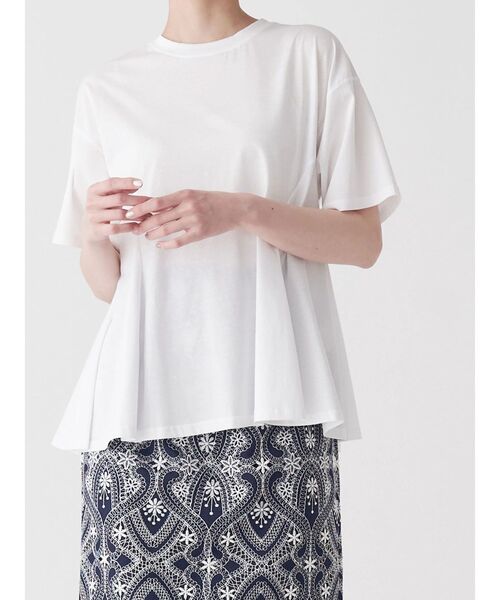 【アイテム】 TONAL(トーナル) ペプラムフレアデザインTシャツ シンプルなデザインの中に女性らしさをプラスしたペプラムデザインがポイントのTシャツ。 バックに施したTONALプレートがアクセントを利かせています。 【おすすめPOINT】 シンプルなデザインのTシャツは幅広いコーディネートに活躍します。 きれいめスタイルや、デニム合わせのカジュアルな着こなしもお勧めです。 ※着用画像はフラッシュの加減で実際の製品と色味等が異なる場合がございますので、生地のズームアップ画像をご確認ください。 ※ご利用の端末画面の設定により実際の商品と色味が異なる場合がございます。 【商品特徴】 透け感:なし 伸縮性:なし 生地の厚さ:普通 サイズ感:ゆったり 裏地:なし ポケット:なし