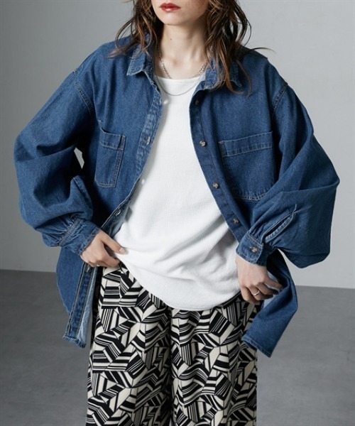 ■デザイン・胸ポケット付きオーバーサイズデニムシャツ・使い込まれた柔らかい風合いと 各所に表れるアタリがこなれた印象に・中厚のデニム生地を使用し 羽織りとしても使いやすい素材感です・ゆったりとした肩落ちのシルエットと ボリュームのある袖形状が より華奢に見せてくれる一着に■素材・しっかり感と柔らかさのあるデニム生地・屋内外での温度調節として 通年で使いやすい厚さを採用■おすすめのスタイリング・ゆったりとしたシルエットを活かし タイトめなボトムに合わせる・上までボタンを留めて ワイドなスラックスにタックイン シンプルシルエットを素材感で魅せる・スポーティーなインナーに合わせ 肩を落としてルードなスタイリングに<仕様>綿100%(織物)前ボタン開き 胸ポケット2 袖口ボタン<洗濯方法>手洗い【Soiunique/スワユニーク】唯一無二のアナタへ―――カジュアル×モードスタイルをベースに、ストレスフリーなサイズ設計でどこかに”抜け感”と”格好よさ”を感じさせる商品をご提案。体型カバーやスタイルアップも叶えつつ、コンプレックスを個性にして自分のスタイルを貫く唯一無二のアナタへ。■キーワード春、秋、デニム、デニムシャツ、デニム生地、ベーシック、ゆったり、重ね着、オーバーサイズ、モード、ソワユニーク、Soiunique、襟付き、カジュアル、大人カジュアル、デザイン、20代、30代、40代、レディースファッション、レディース、シャツ、ベーシック、手洗い可能、前開き、大人カジュアル、きれいめカジュアル、ボタン、ポケット、着回し、羽織、レイヤード、華奢見え、メンズライク、オールシーズン、通年、抜け感、かっこいい、しっかり感、