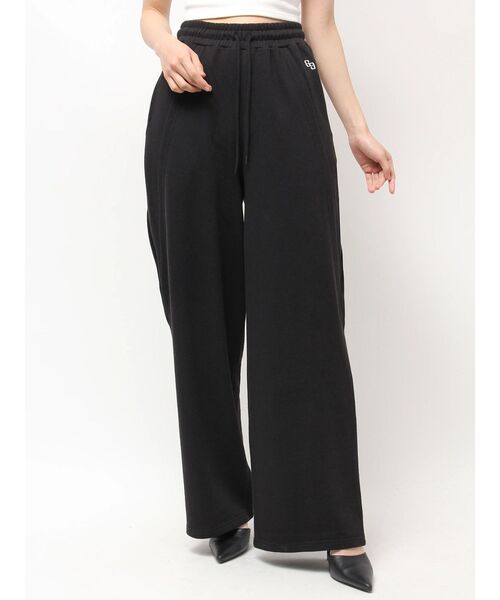 ■商品コメント サイドの切り替えデザインで、今っぽいボリュームワイドシルエットが特徴なスウェットパンツアイテム。 左ポケット部分にGG刺繍が施され、 ゆったりとしたシルエットで快適な履き心地+トレンドのY2Kファッションにもぴったりなアイテムです。 ■コーデ セットで着用できる同素材企画のショートスウェットボレロパーカーにインナーはビスチェ合わせがGYDAらしいスタイリングです。