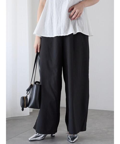 ゆったりと広がるワイドシルエットがリラックスムードを演出するイージーパンツ。ウエストはゴムギャザー仕様で安心感があり、着心地もノンストレスです。気になるレッグラインをさりげなくカバーしてくれるのも嬉しいポイント◎着回しやすいシンプルな無地とアクセントになるドット柄のバリエーションにも注目です。【カラーについて】画像ではわかりづらい柄の違いがあるため、以下をご参照ください。ホワイト→ドット柄ブラック→無地ネイビー→無地パープル→無地※商品画像は、撮影環境やお客様のご利用のPC・スマートフォンのモニター環境などにより実物と色味に差異がある場合がございます。【その他採寸】F ウエスト:[ゴム仕様]66cm