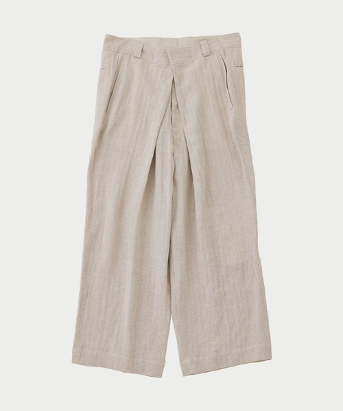 デザイン リネンシルクヘリンボーン素材を使用したタックパンツ。 リネンのトップ糸をベースにシルクノイルの糸を使用したややネップ感のある素材が特徴です。 大きなタックを取った二重構造のフロントデザインになります。 ワイドシルエットで短めの股下設定になります。 メーカー品番:25SLSH02 【ブランド】URU TOKYO デザイナー漆山政春が2010年秋冬シーズンに「AMAZE」をスタート。2011年秋冬より「URU(ウル)」に改名。 コンセプトは「Accelerate Creativity Accelerate Imagination -想像力(頭)と技術力(手)の加速-」 世界で活躍してきた数々のコレクションブランドのパタンナーとして活躍後、独立。 生粋のパタンナー畑で培われてきた技術力、ノウハウを元に新たな視点、想像力で原型を壊し自らの線で新しい形に再構築する。 ※店舗と在庫を共有しておりますので、受注確認メールが届いてもご注文のタイミングによりましては売り切れになる可能性がございますので、予めご了承ください。 ※商品の色味につきまして、撮影環境、お客様のお使いのPCのモニター環境により実際のカラーと画像の色味が違って見える場合が御座います。予めご了承の上、ご注文下さい。 -------------------------------------------- 【お買い物をよりお楽しみいただく為に】 ▼商品のお気に入り登録をおすすめします。 ♡クリックしてください。 完売カラーの再入荷や、ラスト1点の通知、 セールの際の通知を受ける事ができます。 ブランドのお気に入り登録もご一緒にお願い致します。