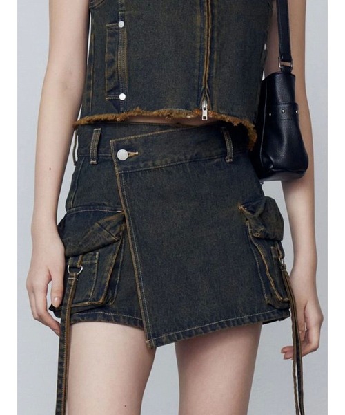デニム素材のラップスカート風ショートパンツセットアップ着用可能!↓デニムウォッシュベストカーブレースアップデニムビスチェ■デザイン前から見るとラップスカートに見えるデザイン。Aラインシルエットなので脚が綺麗に見えます。アウトポケットや動きのある紐ディテールがポイントです。■スタイリング同素材のデニムウォッシュベストとのセットアップがイチオシ!レースアップショートシャツやカットツインセット等女性らしいアイテムとの合わせもおすすめです。※着用画像はフラッシュの加減で実際の製品と色味等が異なる場合がございますので、生地のズームアップ画像をご確認ください。※ご利用の端末画面の設定により実際の商品と色味が異なる場合がございます。【商品特徴】透け感:なし伸縮性:なし生地の厚さ:普通サイズ感:普通裏地:なしポケット:あり