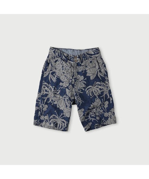 ヨーロッパンのリネンは、とても丈夫でしなやか。ベルギーやフランスの風を纏い、遥か遠く海を越えて届いた糸を、日本の手しごとで丁寧に織り上げました。インディゴカラーに織り上げた生地、リネン特有の粗野な風合いがお気に入り。蓮の花を大胆にプリントしました。ヒップにはダーツを入れて丸みのあるシルエット。ゆるやかなテーパードがきいたニームショーツは、フランスのニーム地方で働く人々の服から着想を得て生まれました。