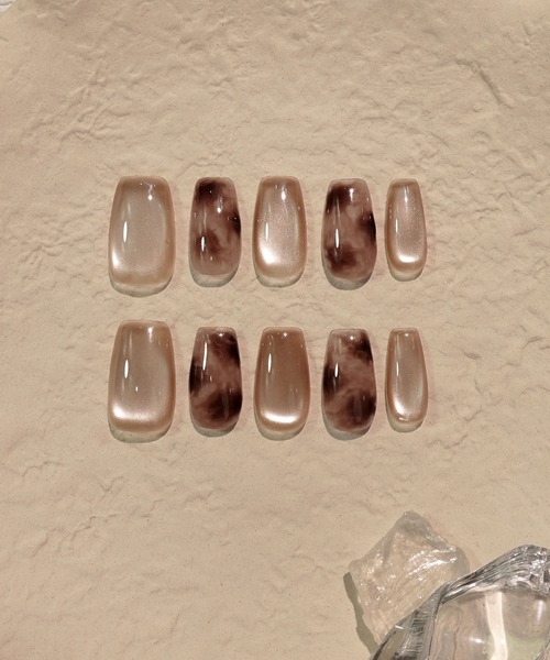 90%の方はMサイズをご購入 チップをお湯で温めるとカーブを調整可能 CodingSet(ベース・ジェル)+専用ライト+リムーバーオイルのЗ点セットで最大30日間持続できるネイルセットが完成! ピンクベージュのマグネットネイル×シアーブラウンのタイダイ柄がおしゃれなネイルチップ ピンクベージュのマグネットネイルとシアーブラウンのタイダイ柄が組み合わさった、おしゃれなネイルチップです。 うるつや感があり、指先を美しく彩る上品なカラー。 控えめで上質な輝きがあり、どんな肌色にもなじみやすいのが特徴です。 全体的に落ち着いたトーンでまとめられているため、派手すぎず、オフィスコーデや普段使いにもぴったり。 ブラウンのタイダイ柄は秋らしさを演出し、季節感をさりげなく取り入れたデザインが魅力です。 形:スクエアオフ(角が丸めのスクエアタイプ) ポイント:タイダイ柄,マグネット,シンプル,大人,ブラウン系,ピンクブラウン系,オフィス 結婚式や同窓会などのお呼ばれ、大切なデートの予定などで「その日だけネイルをしたい」という普段ジェルネイルが出来ない方や、セルフネイルを楽しみたい方へネイルチップをご用意いたしました。 気軽に使えて、アクセサリーのようにその日の気分によってお選びいただけます。 ジュエリーのような輝きのラグジュアリー感あるネイルチップを是非お試しください。 MODEL 着用サイズ : M サイズ:S 親指:13mm 人差し指 :9mm 中指 :10mm 薬指:9mm 小指:8mm ---------------------------------- サイズ:M 親指:14mm 人差し指 :10mm 中指 :11mm 薬指:10mm 小指:9mm ---------------------------------- サイズ:L 親指:15mm 人差し指 :11mm 中指 :12mm 薬指:11mm 小指:10mm ※記載サイズは自爪の1番広い部分の横幅です。 ※付属のネイルファイルで削るとサイズや形の調整が可能です。 ※サイズ表記について商品によって同サイズや同色等であっても各商品毎に誤差がある為、サイズ表記はあくまでも目安としてご参照ください。 <使用方法> 1. ネイルファイルで自爪の表面や形を整えます。 2. 手を洗い、水分をしっかり拭き取ってください。 その後、付属のアルコールパットで爪の表面を拭きましょう。 3. 自爪のサイズと合うチップを根元に合わせて装着します。 このとき、根元から空気を抜くように貼り付けるとしっかり装着できます。 4. 30秒ほど上から抑えたら完成です。 【ご注文の際のご注意】 照明やモニターの写り具合により、画像と実際の商品の色が多少違って見える場合がございます。 爪に異常のある方、アレルギー体質の方、爪の薄い方、弱い方は使用しないでください。 爪に異常を感じた場合は直ちに使用を中止し、専門医等にご相談ください。 以上、ご了承の上ご購入をお願い致します。 Recommend scene 結婚式、二次会、パーティー、デート、オフィス、フォーマル、披露宴、お呼ばれ、成人式、同窓会、女子会、二次会、忘年会、新年会、謝恩会、演奏会、発表会などのシーンでご利用いただけます。 ▼商品のお気に入り登録 完売カラーの再入荷通知や、ラスト1点、セールの通知をお知らせ致します。 ▼ブランドのお気に入り登録 新商品や再入荷など、いち早くブランドの情報を受け取ることができます。 是非ご利用頂き、お買い物をお楽しみ下さい。 ※ご注文いただいた予約商品のお届け時期の確認は、注文履歴ページより行えます。 ※工場の生産の都合上、納期が変更になる場合がございます。発送日の前後については予めご了承ください。 ※実際の着用感には個人差がございますので、予めご了承いただけますようお願い申し上げます。