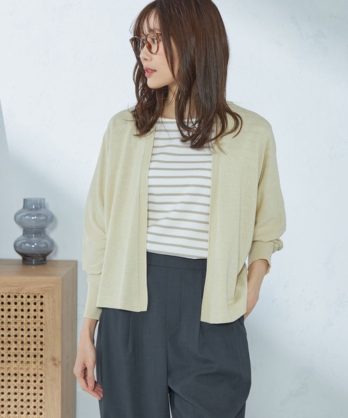 さらりと羽織れる手軽さが魅力のトッパーカーディガン 【機能/素材】 微ラメ使いをポイントにした光沢のある素材感が特徴です。 空気を含むように編み立てたニットは見た目にも軽やか。 【デザイン】 ゆるっとしたシルエットラインにこだわったトッパーカーディガン。 ドルマンスリーブで腕肩周りをゆったりとさせており、着心地はストレスフリー。 【お勧めスタイリング】 ボーダートップスをインナーとして差し込めば、爽やかなマリンテイストがプラスできます。 無地アイテムを合わせたきれいめなコーディネートはオンシーンにもぴったり。 【GALLORIA /ギャロ―リア】 ベーシックだけじゃ物足りない、ほどよくトレンドを取り入れ シーンレスにきちんと見える。 そんな願いを叶えてくれる、いまの空気感をまとった大人のデイリー服「GALLORIA」 買いやすいプライスで、バリエーション豊富に揃う ライフスタイルに寄り添うコレクションを展開します。 ◆Instagram:@galloria.sns 公式Instagramでは最新情報を定期的に更新中!フォローしてお得な情報をゲット! ■商品のお気に入り登録のおすすめ■ 完売カラーの再入荷通知、ラスト1点、お得なクーポンやお値下をお知らせします。 ■ブランドのお気に入り登録のおすすめ■ 新商品や再入荷のお知らせ等、ブランドのお得なクーポンやお値下をお知らせします。
