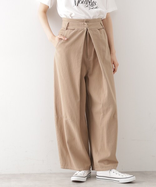 ■商品ポイントタックがたっぷり入ったバレル風パンツは、ユニークでありながら洗練された印象の一着です。深いタックがウエストに施されており、立体感のあるシルエットを生み出します。デザイン性があり、リラックスした雰囲気とともに、エレガントさも演出しています。このパンツは、日常のコーディネートに新しい風を加えてくれるアイテムです。■素材しっかりとした素材感ながらも、柔らかく動きやすいデニム生地とチノの素材をアソートしております。■おすすめコーディネートこのバレル風パンツは、シンプルなトップスと合わせることで、パンツのディテールを引き立てるスタイリングが楽しめます。特に、タンクトップやスリムなブラウスをインすることで、全体のバランスが整い、すっきりとした印象を与えることができます。また、カジュアルにデニムジャケットを羽織ることで、リラックスしたスタイルを演出することも可能です。ヒールを合わせることでエレガントさをプラスし、セミフォーマルなシーンにも対応できる魅力的な一着です。【仕様】・ポケット数:横×2 後ろ×2・前ファスナー・裏地なし※照明の関係により、実際よりも色味が違って見える場合があります。また、パソコン・スマートフォンなどの環境により、若干製品と画像のカラーが異なる場合もございます。モデル情報:身長166cm B72 W62 H86 着用サイズ:12(M)店舗へのお問い合わせ商品番号:040-62029●製品寸法:12(M):W68cm H94cm 股下63cm 前股上40cm 渡り幅35cm 裾幅26cm13(L):W70cm H96cm 股下63cm 前股上41cm 渡り幅36cm 裾幅26cm備考: