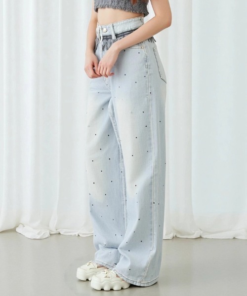 【Paravion/パラビオン 】 〖Design〗 ・ウエスト部分にレースをあしらった、フェミニンムード漂うワイドデニムパンツ。 ・ウエストのブラックレースがアクセントとなり、トップスインスタイルにも映える一着。 ・ゆったりとしたストレートシルエットで体のラインを拾いすぎず、履き心地も抜群です。 ・前に散りばめたストーンとレースが女の子らしいカジュアルに! ・裾に向かってゆとりのあるシルエットが自然と美脚に見えるのが魅力のデニムパンツ。 ・人気のレースとの組み合わせがトレンド感を演出! ・オールシーズンお使いいただけます。 〖styling〗 ・コンパクトなリブニットやクロップド丈のトップスを合わせて、レースデザインを見せる着こなしがおすすめ。 ・足元はパンプスやバレエシューズでレディライクに仕上げても◎ ・ゆるめのスウェットやTシャツを合わせてカジュアルダウンすれば、抜け感ある大人のデイリースタイルにも。 ---------------------------------------------- 透け感:なし 裏地: なし 伸縮性: 若干あり 生地の厚さ:普通 ---------------------------------------------- ●商品のお気に入り登録 ♡をクリック! 完売カラーの再入荷や残り1点の通知、お得なタイムセール通知も受け取ることができます。 ●ブランドのお気に入り 登録新商品や再入荷、セール、クーポン配布などお得な情報をいち早くお知らせします。 ぜひご登録下さい! ●公式Instagram【@paravion_official】 ZOZOに掲載してないコーデや入荷情報など随時更新しております。 是非チェックしてみてください♪ ※ご注意※ ・屋外の光や照明の当たり具合で、実際の商品の色味と カラー別画像の色味に若干の違いが発生する場合がございます。 ・詳細画像と併せてご確認の上、ご注文いただきますようお願い致します。