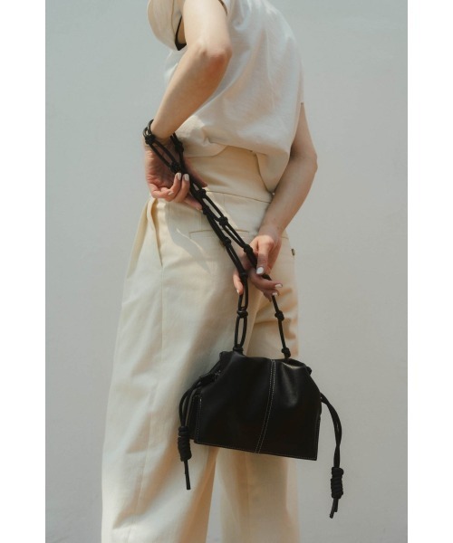 サイズ(平置き)|縦|横|紐長さ|, ONESIZE|17cm|23cm|108cm| ※Knuth Marf基準の測定方法になります。 素材:ポリウレタン 伸縮性:なし 透け感:なし 耐荷重:4kgまで 「バッグが主役」 シンプルなコーデに息を吹き込む一癖バックが登場。 目を惹きつけるチェーンのように連なったデザイン ”アクセサリー感覚で楽しんで” インパクトはありながらも コロッとしたサイズ感で 主役にも脇役にもできる利便性。 手に巻きつけてクラッチバック風に持っても テクニックいらずで小洒落たムードに。