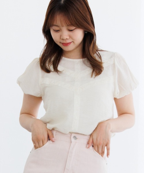■デザイン爽やかで上品なレースブラウス♪小さめのパフスリープが大人可愛いデザインポイント♡気になる二の腕もカバーしてくれます。胸元の繊細なレースでフェミニンな雰囲気を演出♪ウエストイン、アウトどちらもしやすいほどよい丈感でお作りしました。デイリー使いやデートに◎シンプルなデザインで着回し力抜群!オフィスシーンにもぴったりな一枚です。■おすすめコーディネートthin ribbon skirtやside ribbon skirtと合わせたフェミニンなスタイリングがおすすめ♡アクティブなお出かけの際はデニムパンツとのコーディネートもお楽しみください♪■flower/フラワー「love&joy」をコンセプトに、商品に愛を込め、お客様に楽しんでいただけるような、ナチュラルでガーリーなアイテムを提案していきます。【お買い物を上手にお楽しみいただくためのPOINT2つ】◎ 購入ボタン横の ♡ (ハートマーク)をクリック! 完売カラーの再入荷通知、残り1点の通知、セールの通知を受け取れます。 (クリックまたはタップで商品のお気に入り登録♪)◎ ショップのトップページにある ♡ (ハートマーク)「お気に入りショップに追加」をクリック! 新商品や再入荷等、いち早くブランドのお得な情報を受け取れます。 (ブランドのお気に入り登録♪)