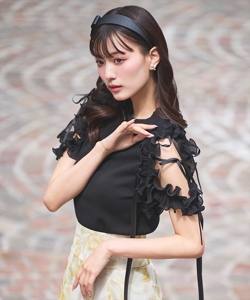 【女心をくすぐるフェミニンな要素をギュッと込めた、ショルダーコンシャスな着映えニットプルオーバー】 【Point】 ・立体的なプリーツ加工がされたフリル×リボンを掛け合わせた、ショルダーコンシャスなニットプルオーバー。 ・さりげない肌見せで、品の良い大人な抜け感に仕上げました。 ・レーヨンを多く含んだ柔らかくソフトな肌触りで、ストレスフリーな着心地のニットプルオーバーです。 ケア方法:ドライクリーニング 透け感:なし(オフのみ多少あり) 裏地:なし 伸縮性:あり 光沢感:なし 生地の厚さ:薄手 F:(00):着丈 57㎝/身幅 32㎝/肩幅 31㎝