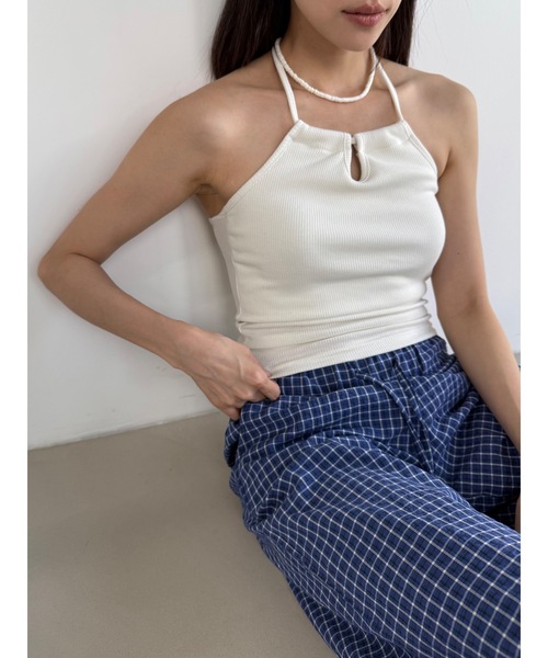 カップ入りデザインホルターネックキャミ◉ DETAIL・伸縮性に優れたリブカットソー生地を使用・スクエアネックにリングデザイン・ホルターネック仕様・パット入り(パット取り外し可能)◉ FABRIC————————透け感:ほぼなし伸縮性:あり厚み:普通裏地:バスト部分あり————————◉ ATTENTION————————■ご覧のモニター環境や撮影環境により実際の商品と多少色味が異なって見える場合がございます。■本製品は生産過程におきまして色味、サイズ感等若干の誤差が出る場合がございます。上記注意点での返品、交換はお断りします。予めご了承の上お買い求め下さいませ。————————最新情報や他コーデなど、、詳しくはブランド公式Instagram・ディレクターInstagramをご覧下さい!【Didot.showroom / ディドットショールーム】韓国在住のディレクター自ら、リアルタイムに感じとった現地のトレンドをいち早く発信!シルエットにこだわったボトムスを中心に、シンプルながらも色味やシルエットで個性を発揮するアイテムを取り揃えます。ガーリーめなアイテムも甘くならない着こなしで、スタイリッシュで中性的なミニマムスタイルを提案します。◆◇ 効率よくお買い物を楽しむ為に【お気に入り登録】◇◆《商品のお気に入り登録》お気に入りの商品のサイズ・カラーを指定して、お気に入りの登録が可能!♡[セール通知・ラスト1点の通知・再入荷通知]を受け取ることができます。《ブランドのお気に入り登録》新商品の発売や再入荷、タイムセールやクーポン発行のお知らせなど、Didot.showroomがお届けするお得な情報を受け取ることができます。※ 通知はアプリでも受け取ることができます。アプリの通知設定をONに!