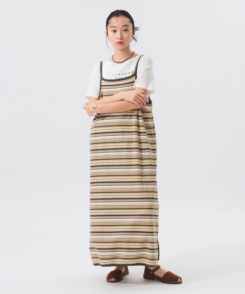 ヴィンテージ感漂う、大人カジュアルワンピ ■デザイン 〈BEAMS BOY(ビームスボーイ)〉の定番、マルチボーダーワンピースがアップデートし新登場。ネップ感のある生地を使用し、古着のようなあたたかみを感じるデザインに仕上げました。 ■コーディネート Tシャツとのレイヤードスタイルがおすすめ。同シリーズのタンクトップ【品番:13-04-0324-458 】は、肩のストラップのバランスを計算してデザインされており、重ね着も美しく決まります。■ディテール 裾はヴィンテージのカットソーワンピースをイメージソースに、丸みのあるスリットデザインを採用。 ■サイズ 全体的にゆとりもを持たせたリラックスフィット。肩紐のボタンで長さの調節が可能です。 ■素材 端番手のネップ糸を使用した先染めボーダー生地を採用し、ヴィンテージライクな風合いに仕上げました。 ■ケア方法 洗濯可(詳細は商品についている品質表示ラベルをご覧ください) 【YELLOW】Model : H161 B76 W60 H82 Size : ONE SIZE 【MINT・NAVY】Model : H164 B72 W59 H85 Size : ONE SIZE ※光の当たり具合やパソコンなどの閲覧環境によって、実際の色味と異なって見える場合がございます。予めご了承ください。 ※商品の色味は商品単体で撮影した画像をご参照ください。