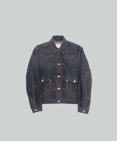 デザイン 507XXをベースに再構築したデニムジャケットは、トリプルプリーツやオーバルステッチ、象徴的なワイングラス型のポケットを内外両面に配しています。 袖口から伸びるエルボーパッチに加え、テーラードスリーブがインパクトのあるシルエットを演出します。 素材はSUGARHILL ORIGINAL DENIM 14oz。ムラのある風合いが特徴的な丈夫なコットンを主体とした生地です。 経糸はインディゴロープ染め、緯糸は従来のナチュラルカラーではなくカーキ色に染めています。カーキ色の緯糸を使用することでヴィンテージのような深みのある色落ちを実現しています。 素材 ・裏地:なし ・伸縮性:なし メーカー品番:CLASS001 -SUGARHILL- 林 陸也がデザインを手掛けるSUGARHILL。ブランド名は、FIT在学中に住んでいた、ニューヨークのシュガーヒル地区から名付けられた。在学中に国内外の有名ブランドで経験を積み、2016年にデビュー。ミリタリーやワークをベースにしつつ、無骨さや尖った要素を中性的にリヴィルドした上質な仕立てのコレクションは、国内外から高い注目を集める。 ※店舗と在庫を共有しておりますので、受注確認メールが届いてもご注文のタイミングによりましては売り切れになる可能性がございますので、予めご了承ください。 ※商品の色味につきまして、撮影環境、お客様のお使いのPCのモニター環境により実際のカラーと画像の色味が違って見える場合が御座います。
