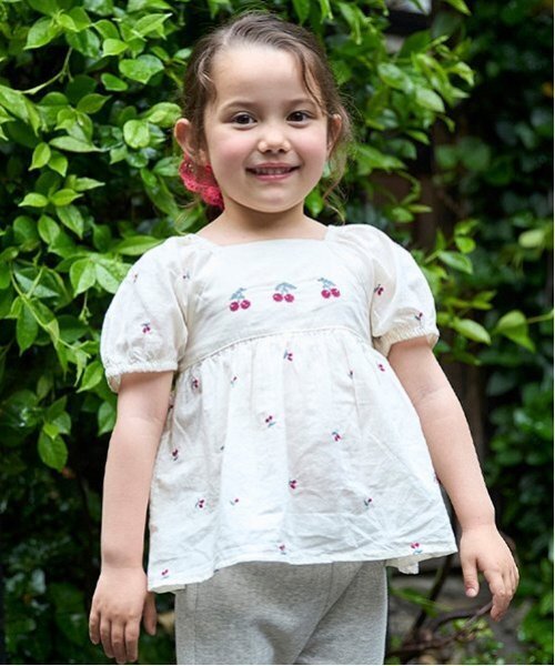 インド綿からはじめる夏 春夏のお出かけでリピート確定 petit mainらしいチェリーがかわいい布帛チュニック 胸元に3つクロスステッチで施されたチェリーと 前面に総柄で刺繍されたチェリーで1着で華やかな印象に◎ 肩や袖口にはゴムが入っていることで バルーンスリーブ風のふんわりとしたシルエットに 襟口もゴム入りで着脱もらくちんに♪ バックスタイルはトレンドのリボンモチーフで 全方向からかわいく見える ※リボンはボタンで取り外し可能です。 9651586:【リンク】チェリー刺繍セットアップでベビーサイズとのお揃いコーデができます。 【透け感】透けない 【生地の厚さ】普通 【伸縮性】あり 【裏地】なし 【ポケット】なし