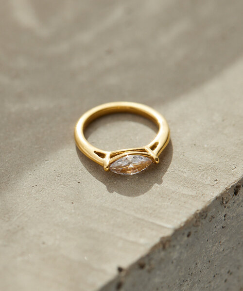 手元に上品な輝きを添える、マーキスジルコニアリング。 光を浴びてキラキラと輝くマーキス型のジルコニアが、あなたの指先を美しく彩ります。 ステンレス素材なので、普段使いにも最適。 ジルコニアを横向きに配置することで、さりげない個性をプラスしました。 華奢なリングなので、お手持ちのリングとの重ね付けもしやすく、コーディネートの幅が広がります。 シンプルなデザインながらも、ジルコニアの存在感が大人っぽさを演出。 カジュアルからきれいめまで、様々なスタイルに合わせやすいアイテムです。 ■ポイント ・マーキス型のジルコニアが輝く、ステンレスリング ・横向きに配置されているので、他のリングとの重ね付けもしやすい ・細めのボディが手元を繊細に、ジルコニアの輝きが大人っぽさを演出 ■SUS304Lとは イアのステンレスアクセサリーはSUS304Lを使用しております。 一般的な腕時計にも使用されており、他のアクセサリーに比べアレルギーを引き起こしにくいといえます。 変色しにくい上に、お風呂、温泉、プール、海など水に強く錆びにくいのが特徴です。 お手入れ:汚れたと感じた場合は、メガネ拭きなど研磨剤の入っていない布で軽く磨いてください。 ※アレルギーの原因はさまざまです。 ステンレスはアレルギーが起きにくい素材ではありますが、すべての方にアレルギーが起きないことをお約束するものでありません。