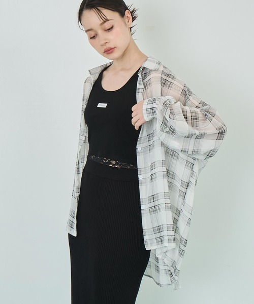 透け感で魅せるチェックスタイル。●軽やかなチェック柄が、スタイリングに程よい抜け感をプラス。●シアー素材がほんのり透けて、女性らしいニュアンスを演出。●リラックス感のあるシルエットが、自然体でいながらも上品に仕上がります。♦detailシアーなチェックブラウスは、程よい透け感が軽やかな印象を与え、シンプルなコーディネートにもアクセントを添えます。ゆったりとしたオーバーサイズシルエットが、動きやすさと着心地の良さを両立。チェック柄の配色はモノトーンベースで、コーディネートの幅を広げます。♦styling〇カジュアルスタイル→デニムパンツと合わせて、爽やかな大人カジュアルに。〇フェミニンスタイル→プリーツスカートとレイヤードし、柔らかな印象をプラス。〇モードスタイル→ブラックワイドパンツと合わせて、シックなトーンでまとめる。♦コーデにオススメタグデザイン ミニタンクトップ (153-5745)プリーツ キャミワンピース (157-5771)-----------伸縮性・・・なし透け感・・・あり光沢感・・・なし生地の厚さ・・・薄めポケット・・・あり裏地・・・なし-----------※商品のお取扱いに関しましては、商品に付属のアテンションカード、洗濯ネームをご覧ください。※モデル着用画像は光の当たり具合で色味が違って見える場合がございます。※商品の色味の目安は、商品単体の画像をご参照ください。※柄物は商品により柄、模様の出方が異なる為、画像と異なる場合がございます。※同じデザインの商品でも、素材の特性や生産時期(ロット)により、色合いに若干の個体差が生じる場合がございます。あらかじめご了承ください。【お買いものをお楽しみいただく為に!】▼商品のお気に入り登録完売カラーの再入荷通知や、ラスト1点の通知、セールの通知も受け取ることができます。▼ブランドのお気に入り登録新商品や再入荷など、いち早くブランドのお得な情報を受け取ることができます。