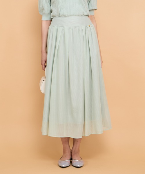 ●POINT バックメタルジップデザインのサーキュラースカートです。 広めのウエスト幅切り替えデザインで、バックゴムギャザー仕様になっています。 左腰位置にはメタルアクセントがついており、バックジップデザインとのバランスをとっています。 無地見え柄のホワイト、ライトグリーンとライトブルー×オフホワイトストライプの3色展開です。 同素材の展開に、シアーストライプリボンブラウス(2213-52128)がございます。 ●FABRIC シアーストライプ柄のシワの目立ちにくいイージーケアテキスタイルを使用しています。 ---------------------------------- 透け感:淡色のみややあり 厚さ: やや薄い 伸縮性:なし 裏地: あり ポケット: なし ---------------------------------- ---------------------------------------------------------------- 洗濯方法 家庭洗濯:液温は40℃を限度とし、手洗いができる。 自然乾燥:日蔭の吊り干しがよい。 アイロン:底面温度160℃を限度としてアイロン仕上げができる。 ドライクリーニング:石油系溶剤による弱いドライクリーニングができる。 ---------------------------------------------------------------- ■モデル身長 163cm 165cm 着用サイズ M ※画像の商品はサンプルとなりますので実際の商品と仕様、加工、サイズが若干異なる場合がございます。 ※お客様のモニター環境により実際のお色と多少異なる場合がございます。 ※撮影状況や光の当たり具合により、色合いが異なって見える場合がございます。 ---------------------------------- ▼商品のお気に入り登録 ハートマークをクリックし、お好きなカラーを選んでお気に入りに登録 完売カラーの再入荷通知や、ラスト1点の通知、セールの通知も受け取ることができます。 ▼ブランドのお気に入り登録 新商品や再入荷等、いち早くブランドのお得な情報を受け取ることができます。 ----------------------------------