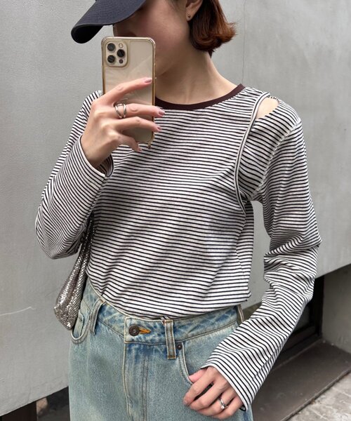 ◇よちえ(@1484__yy)企画アイテム◇ トレンド感満載!人気の韓国シリーズが春も登場♪ アシメのカットアウトデザインで、1枚で楽ちんに韓国っぽコーデの完成。 さりげない肩の肌見せで、女性らしいヘルシーコーデが叶います! 骨格ストレートさんもスッキリみえする首周りデザイン。首元の配色もポイントになってくれます。 細ボーダーデザインなので、大人っぽく着こなせます。 さらっとした肌触りでロングシーズン大活躍してくれる万能アイテムです。 ■お手入れ方法 洗濯:洗濯ネットを使用し、弱コース可(単独洗い/蛍光増白剤使用不可) タンブル乾燥:不可 アイロン:あて布を使用し、110℃まで可 ・・・・・・・・・・・・・・・・・・・・・・ 透け感:なし 裏地:なし 伸縮性:あり 光沢感:なし 生地の厚さ:普通 ・・・・・・・・・・・・・・・・・・・・・・ 気になった商品はお気に入り登録がオススメです! 入荷情報や、クーポン情報が通知されるようになります。 ※画像の商品はサンプルを使用しております。実際の商品と若干の仕様が変更になる場合がございますので、予めご了承の上ご注文くださいますようお願いいたします。