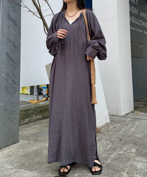 ◇きくちゃん(@kiku_chan_tp)企画アイテム◇ 1枚で簡単にコーデが決まり、 体型カバー&すっきり見えが叶う夢のワンピース! ふんわりと広がる袖のボリュームが女性らしい。 袖をたくし上げた時のボリューム感がとにかく豪華なデザインにこだわりました! 横から見た時に袖がたゆむシルエットが魅力です♡ 袖のカフスはリボンで結べるデザインとなっており、さりげなく垂れるリボンがポイントに! すとんと落ちるシルエットで、すっきり見えが叶います。 首元はスキッパーデザインなので顔まわりもすっきり見えて、小顔効果を発揮◎ ヘルシーに女性らしい印象で着ていただけますよ♡ 1枚で着ていただくのはもちろんですが、 サイドにはスリットも入っているので デニムをレイヤードしたカジュアルスタイリングもおすすめ! ■お手入れ方法 洗濯:洗濯ネットを使用し、手洗いモード(洗濯ネット使用/蛍光増白剤使用不可) タンブル乾燥:不可 アイロン:あて布をし110°まで可 ・・・・・・・・・・・・・・・・・・・・・・ 透け感:ややあり 裏地:なし 伸縮性:なし 光沢感:なし 生地の厚さ:やや薄め ・・・・・・・・・・・・・・・・・・・・・・ 気になった商品はお気に入り登録がオススメです! 入荷情報や、クーポン情報が通知されるようになります。 ※画像の商品はサンプルを使用しております。実際の商品と若干の仕様が変更になる場合がございますので、予めご了承の上ご注文くださいますようお願いいたします。