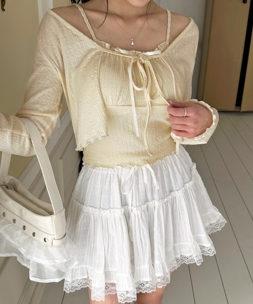 [ラブリータンクトップ+ボレロカーディガンSET] ラブリーなタンクトップ+ボレロセットアイテムを紹介します! ▼ポイント - ラブリーな雰囲気 - タンクトップ+ボレロカーディガンのSET構成 - 活用度GOOD ▼ディテール エンボス加工のしっかりとした素材で、可愛らしい雰囲気が感じられるセットトップスアイテムです♡ どんどん暖かくなる今の季節にぴったりなタンクトップと、 さっと羽織れるボレロカーディガンの組み合わせ…! 活用も高く、強くおすすめしたいアイテムです! ▼おすすめコーデ デニムと合わせたカジュアルかつ女性らしいスタイルや、 フレアミニスカートと合わせて、爽やかなガーリーコーデを演出するのもおすすめです! *ご覧のモニター環境や撮影環境に応じて実際 商品の色と異なって見える場合がございますので、ご了承ください。 *素材の特性を考慮して管理法留意事項を購入/着用する場合は必ず 確認お願いします。 サイズ感:普通 伸縮性:あり 肌触り:普通 厚み:普通 透け感:なし 【by muni:r とは】 "munir" は、イタリア語で "服を着る" を意味します。 韓国のファッションと日本のファッションの良さを一つにまとめて 大人カジュアルにちょっぴり甘い、1枚でどんなシチュエーションにも活用できる服がある 「私だけのシークレットクローゼット」がコンセプトです。 「より自分らしく、より自分を好きになる」体験をムニールは伝えたい。 20代前半から20代後半まで幅広く着ていただける女性のためのブランド by muni:r でございます。 ★商品お気に入り登録 [お気に入り登録] を押すと登録完了! お好きなアイテムとサイズのカラーを登録すると再入荷、販売のお知らせ等を受け取れます。 ★ブランドお気に入り登録 新商品、お買い得情報、クーポンなどをできるだけ早く通知を受け取れます。 - ブランドの最新情報はinstagram【@by__munir】でご確認いただけます! * 注文履歴ページよりご注文いただいた商品の配送時間を確認できます。 * 他のキャンペーンにより、価格が変わる場合があります。