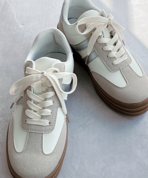 シルバーのラインと色味にこだわったWH/SV(ホワイト/シルバー)はスポーティ過ぎず、優しい色合いで女の子らしい印象!コーデを引き締めるBL(ブラック)はどんなアイテムとも合う万能アイテム。 ホワイトのダブルラインで重くなり過ぎず、カジュアルからストリートスタイルまでお任せ! ナチュラル盛れるボリュームソールは、歩行時足裏の衝撃吸収はもちろん、ぐんぐん前に進むような快適な履き心地もポイントです。 【サイズ】 S (約23-23.5cm) M (約23.5-24cm) L (約24-24.5cm) LL (約24.5-25cm) 3L (約25-25.5cm) ヒールの高さ:約4.5cm ※ATTENTION※ ◇汗や雨などの湿気、摩擦などによって色落ちし、靴下などの衣服に着色する可能性がございます。ご使用には十分にご注意ください。 ◇装飾品は取れやすいので、お取扱い・引っ掛けにご注意ください。 ◇商品画像の撮影は室内で行われているため、ライティングにより実物と色味が少し異なる場合がございます。 ◇商品のお気に入り登録がおすすめです! 再入荷などの通知を受け取ることができます。 Noubel Voug Relax ブランドコンセプト 時代の流れに対応し、トレンドを取り入れたデザイン をシーズン毎に多数展開します。 素材感、色使い、履き心地に特に重点を置いていますので 素敵で、可愛いくて、しかも楽チンなアイテムを 豊富にご用意します。 お求めやすい価格設定も魅力のプライベートブランドです♪