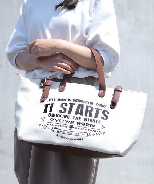 【大人カジュアルなキャンバストート♪】 大人気、プリントキャンバス×レザーハンドルトートバッグ/ショルダーバッグ/ビジネスバッグ。 しっかり厚みのあるキャンバスに大胆な英字プリントを施したおしゃれなデザイン。 ハンドル部分に上質なPUレザーを使うことで、高見えする大人かわいいアイテムに。 ○斜めがけスタイル可!2WAY仕様 1way-手持ちトートバッグ 2way-斜め掛けショルダーバッグ iPadや500mlペットボトル、ポーチ、長財布、薄手の衣類などもしっかり入る大きめサイズ! 広めの底マチ仕様なので、バッグ単体で自立し、中の荷物が見やすいのも魅力の1つです。 オンオフ兼用で、キレイめにも、カジュアルにも合わせやすい上品なトートバッグに仕上げました。 [仕様] ・メイン口:サイドベルト留め×ファスナー開閉 ・内側:小物ポケット×2、ファスナーポケット中×1 ・底面:自立式 ・付属品:着脱式ショルダー紐 [サイズ/重さ] 高さ27cm/下横幅40cm/上横幅50cm/奥行(底マチ)17cm/持ち手高さ23cm/肩紐長さ85cm 470g [素材] 合成皮革/キャンバス おすすめのシーン 通勤 オフィス 通学 デート ディナー オケージョン フォーマル サブバッグ、旅行、レジャーなど幅広くお使いいただけます。 クリスマスやお誕生日などのプレゼントやギフトなどにも最適な仕上がりです。 ▼ブランド 【florge】 -フロージュ- 「着る人の心や体を癒し包む服、何気ない日常をちょっとだけ特別な日に変えられるアクセサリー」をテーマに、おしゃれでかわいい商品からおとなめオフィスに使える商品までトレンドの人気アイテムをご提案するレディースブランドです。 プチプラ商品を多く取り扱っているのも嬉しいポイント♪ 画像付近のブランド名からぜひご覧ください。