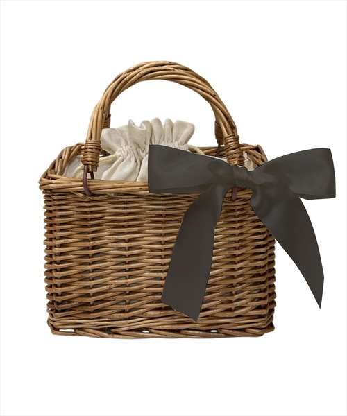 夏の装いにぴったりな巾着デザインのカゴバッグ 【Design/Styling】 ・天然草木を使用したナチュラルな風合いが魅力の、夏らしさあふれるかごバッグ♪ ・涼しげで軽やかな素材感が、サマースタイルをより季節感たっぷりに仕上げてくれます。 ・巾着デザインをドッキングしているため、中身が見えず収納も安心◎ ・小ぶりながら必要なアイテムがしっかり入る、デイリー使いにも便利なサイズ感です。 ・キュートな結びリボンは取り外しが可能なので、お好みのリボンに付け替えたり、スカーフを結ぶのもおすすめ♪ ・浴衣や夏祭りなど、和装との相性も◎なデザインで、イベントシーンでも活躍。 ・ナチュラルコーデやワンピースと合わせるだけで、季節感あるスタイリングが完成します♪ F:口幅21cm/底幅23cm/高さ16cm/持ち手上がり9cm