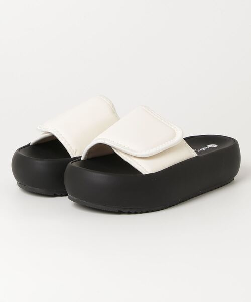 シュガー クッション スライド サンダル【SUGAR SUGAR シュガーシュガー】「ふわっ、もっちり、やみつきクッション。」毎日履きたくなる、やみつきの一足。【商品説明/ポイント】1.マシュマロのような柔らかい素材傾斜がなく安定感のある厚底。合皮でありながら、ふんわり包み込まれる履き心地。2.ワイドベルクロデザイン足にしっかりフィットする大きめストラップは、調整可能で脱げにくく安定感も◎。3.シンプル&モードなデザインベーシックなブラックと洗練されたホワイトの2色展開で、カジュアルからフェミニンまでコーディネートを楽しめます。4.スタイルアップ効果さりげない厚底で、脚長・美脚効果も期待できるのが嬉しいポイント。コロンとしたシルエットに注目。【カラー】ブラック、アイボリー【重量】309.5g【素材】合成皮革【ZOZOTOWNでのお買いものを便利に!】★商品のお気に入り登録★・完売カラーの再入荷通知や、ラスト1点の通知、セールの通知を受け取ることができます。★ブランドのお気に入り登録★・新商品や再入荷など、いち早くブランドのお得な情報を受け取ることができます。※他のキャンペーンにより、期間中に価格が変動する場合があります。※セールは予告なく終了させていただく場合もあります。※ご注文いただいた予約商品のお届け時期の確認は、注文履歴ページより行えます。