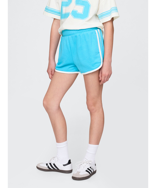 驚きの柔らかさで着心地抜群。肌に触れる内側は毛羽立たせてふんわりソフトな肌あたりに、表側は滑らかな質感に仕上げて体になじむくったりとした柔らかさを実現。ストレスフリーなデイリーウェアは毎日大活躍すること間違いなし!優しく心地よい肌触りのコットン混フレンチテリー生地で作られたプルオンタイプのイージーウエストショートパンツウエストゴムサイドに箱ポケットリブ編み仕様、コントラストの効いたリブ編みパイピングドルフィン裾このショートパンツはリサイクルポリエステルを23%使用しています。リサイクル素材を使用することで、バージン素材に比べて資源の使用と生み出される廃棄物の量を削減しています。この商品はジェンダー平等と女性のエンパワーメントを精力的に推進する工場で生産されています。産業を見直し、平等性を支援するRISE (Reimagining Industry to Support Equality) とGap Inc. が提供する 「Personal Advancement & Career Enhancement (通称P.A.C.E.) 」を通じて、Gapの商品生産に携わる女性たちの社会的地位と生活の向上に必要な「スキル」「知識」「自信」「レジリエンス」を培うための教育プログラムを提供しています。*商品タグに記載の価格とサイト上の販売価格が異なる事があります。【Gap ギャップ】1969年にアメリカ・サンフランシスコで創業以来、世界的なカジュアルファッションブランドとして、常にモダンなアメリカンカジュアルを提案し続けています。※商品画像は、光の当たり具合やパソコンなどの閲覧環境により、実際の色味と異なって見える場合がございます。予めご了承ください。