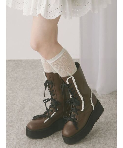 ※スッキリとしたつくりのため、通常よりワンサイズ上のご購入を推奨いたします。リメイクしたような、used感が楽しく愛らしい印象のレースアップブーツです。たっぷりのリボンやレーステープでfeminineさをプラス。プラットフォームのソールですっきり見えも嬉しいpoint。【商品のお気に入り登録】♡をクリック!完売カラーの再入荷や、ラスト1点の通知、セールの際の通知も受け取ることができます。【ブランドのお気に入り登録】新商品や再入荷など、merryの情報をいち早くお知らせします!ぜひご登録ください♡