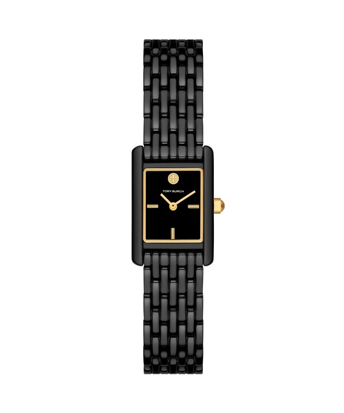エレガントな、すっきりとしたライン。クラシックなリンクブレスレットとレクタンギュラーダイヤルが特徴のMINI ELEANORウォッチを、深みのあるブラックでアップデート。バタフライクラスプ仕様のブレスレットに、ダブルTロゴでアクセントを効かせました。コレクション名:THE ELEANORケースサイズ:28MMラグ幅:14MM防水: 3気圧ムーブメント:クォーツ表示:アナログ輸入: 正規品保証:2年間【 TORY BURCH について 】CEO兼デザイナーのファッションスタイルや感性を表現したアメリカンライフスタイルブランド「トリー バーチ」。トリーの「T」を組み合わせた ロゴマークや幾何学模様、そして上質なレザー使いは、品格とクラス感を漂わせます。< クオーツ製品の電池について >お買い上げ時に時計にセットされている電池は、動作確認用のモニター電池です。出荷前の保管期間中にも電池は消耗しており、ご購入時点で電池が切れている場合がございます。なお、電池切れは保証の対象外となりますので、あらかじめご了承ください。< ご確認ください >※パッケージは実際の画像と異なる場合がございます。※外箱には、輸送時にキズや凹みが生じる場合がございます。あらかじめご了承ください。※ご利用のモニター環境や照明の影響により、実際の商品と色味が異なって見える場合がございます。※納品書は保証書の代わりとなりますので、大切に保管していただきますようお願いいたします。※商品タグに記載している価格につきまして、旧価格のものが混在している場合がございます。それにより、商品に表示されている価格と異なるタグが付いている場合がございますが、正しい販売価格はご注文時に画面に表示された価格となります。ご了承下さいますよう、お願い申し上げます。