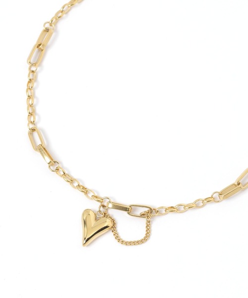 ーーーハートのモチーフがポイントのネックレス。ランダムに並ぶチェーンが目を惹くデザインです。水や汗に強いステンレス素材を使用。変色しづらく耐久性に優れているのが特徴です。ーーー-------------------------------------≪お買い物をよりお楽しみいただくために≫◆商品のお気に入り登録(ハートマークをクリック)完売カラーの再入荷通知や、完売間近の通知、セールの通知も受けることができます。◆ブランドのお気に入り登録新商品や再入荷など、いち早くブランドのお得な情報を受け取ることができます。-------------------------------------