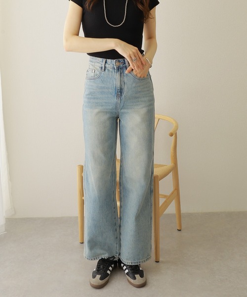 スッキリ見えするセミワイドシルエットのデニムパンツ。 穿くだけで抜け感を演出できるウォッシュ加工。 ハイウエスト仕様のためスタイルアップ効果が高く、バックスタイルはシンプルながらもきれいに見える統計に。 癖のないミニマルなデザインは合わせるテイストを選ばず、幅広く活躍する優れもの。 トップスインスタイルはもちろん、クロップド丈のシャツやビスチェを合わせるなど、オールシーズン様々な着こなしが叶います。 ■DETAIL ・透け感:なし ・生地の厚さ:普通 ・裏地:なし ・伸縮性:ややあり <注意点> ・色合いはモニター環境により若干の誤差が出ます。 ・サイズは平置きにして測定していますが、測り方によって誤差が出る場合がございます。 ・入荷・生産時期により、色、サイズ、素材など多少異なる場合がございます。 ・本製品は生産過程におきまして、生地を織る際の糸の継ぎ目や多少のほつれが生じることがあります。 ・簡易包装となっており、保管・梱包時にシワが伴う場合がございます。 <注意点> ・色合いはモニター環境により若干の誤差が出ます。 ・サイズは平置きにして測定していますが、測り方によって誤差が出る場合がございます。 ・入荷・生産時期により、色、サイズ、素材など多少異なる場合がございます。 ・本製品は生産過程におきまして、生地を織る際の糸の継ぎ目や多少のほつれが生じることがあります。 ・簡易包装となっており、保管・梱包時にシワが伴う場合がございます。