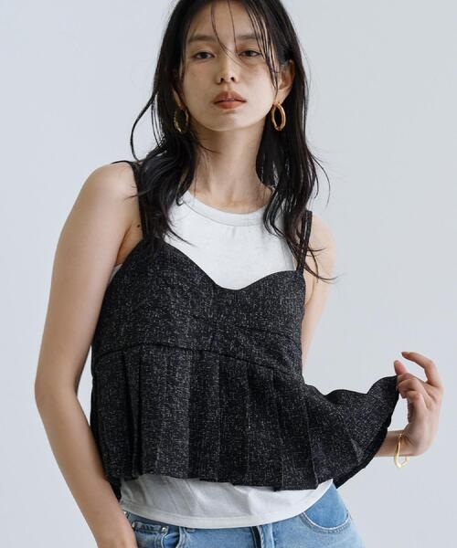 Design Point 軽やかなプリーツデザインで、新鮮な印象を与えるキャミソールビスチェ。 シルエットが絶妙にボディラインを引き立て、動くたびにふわっと広がります。 Styling Point Tシャツやブラウスと重ねて、トレンド感満載のレイヤードスタイルが楽しめます。 デニムやスカートと合わせることで、カジュアルにもモードにも変化自在。 さまざまなシーンで活躍するアイテムです。 Fabric Point 柔らかい素材感で着心地も◎。 ストレッチ性があるため、動きやすさも考慮されています。 デイリーユースにぴったりのアイテムで、気軽にオシャレを楽しめるのが嬉しいポイントです。 ※照明の関係により、実際よりも色味が違って見える場合があります。また、パソコン・スマートフォンなどの環境により、若干製品と画像のカラーが異なる場合もございます。 店舗へのお問い合わせ商品番号:523-12050 ●製品寸法: 38(M):総丈31cm B86~102cm 備考: