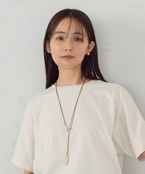 《デザイン》 2連の紐がポイントのスライドY字ネックレスです。 首元はチェーンではなくポリエステルのコードを 使用しているので軽さもあり、汗をかきやすシーズンにも 安心してお使いいただけます。 スライド式で紐の長さは調節ができるので、 襟ぐりのあきやトップスのデザインに合わせて 長さをショート、ミディアム、ロングに変えられるのもポイントです! 紐タイプは金属アレルギーが気になる方にも◎ 《素材》 メッキパーツはシンプルなスクエアーとスクエアバーを使用。 ネック部分は1mmのポリエステルのコードを2連で使用しています。 ………………………………………… 光沢感:一部あり アジャスター:なし(スライド式) ………………………………………… ※画像の商品はサンプルとなりますので実際の商品と仕様、加工、サイズが若干異なる場合がございます。 ※こちらの商品はFIVE FOXes独自の採寸方法となっています。 本サイトのサイズガイドと採寸方法が異なる場合がありますのでご了承ください。