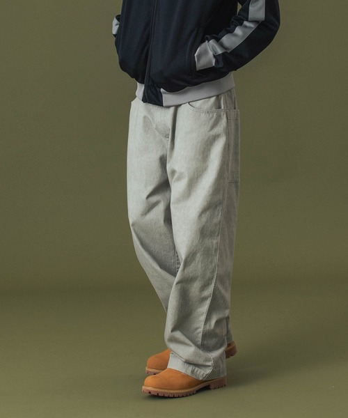 【ディテール】・全体の加工感が魅力のワイドパンツ。・丈夫でシワになりにくいツイル素材仕様。・バックポケットに配置したオリジナルグラフィック刺繍がポイント。・ウエスト部分のパッチもさりげないポイント。・透け感:なし・裏地:なし・生地の厚さ:普通・伸縮性:なし・シルエット:ワイド【取り扱い注意事項】・アテンションタグ・洗濯表示を必ずご確認の上、ご使用下さい。・染料の性質上色落ちします、他のものと分けて洗ってください。・汗や雨等で濡れた場合や着用中の摩擦で衣類、他のものに色が移る恐れがあります。色移りした場合は早めに洗ってください。・1枚1枚風合い、サイズ等が微妙に違う場合がありますがご了承ください。※画像の商品は光の照射や角度により、実物と色味が異なる場合がございます。また表示のサイズ感と実物は若干異なる場合もございますので、予めご了承ください。※商品の色味の目安は、商品単体の画像をご参照ください。※画像の商品はサンプルとなります。実際の商品と色味、仕様、加工、サイズ、素材等が若干異なる場合がございます。※予約商品など一部商品につきましては、生産の都合上、お届け時期が前後する場合がございます。【お気に入り登録のオススメ!】▼商品のお気に入り登録 完売カラーの再入荷通知や、ラスト1点、セールの通知をお知らせします。 ▼お気に入りショップに追加 新商品や再入荷など、いち早くブランドの情報を受け取ることができます。