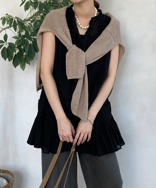 -■2025 SPRING & SUMMER ITEM■ スタリングに甘めの要素を加えてくれるアイテム! 裾をプリーツに切り替えたタンクブラウス。 シアー感のある素材と、風通しのいいシルエットで真夏も快適に着られる1着に。 腰回りやヒップの気になる部分もカバーしてくれるため、パンツスタイルにぴったり。 フロントボタンのデザインもおしゃれに見せてくれるさりげないポイントですよ。 - POINT - ・プリーツに切り替えたデザイン ・シアー感のある素材 ・腰回りやヒップもカバー! -------------------------------- 洗濯:手洗い可能 透け感: あり 裏地: なし 伸縮性: ほとんどなし 光沢感: なし -------------------------------- 【 ♡ をクリックでお得な情報をお知らせいたします 】 〈 商品のお気に入り登録 〉 お気に入りアイテムのお値下げ・再入荷・在庫ラスト1点など通知を受けることができます。 〈 ブランドのお気に入り登録 〉 DOUDOUの新商品や再入荷、セール、クーポン配布などお得な情報を受けることができます。 -------------------------------------- ※ 生産の都合上、お届け時期が前後する場合がございます。 ※ 掲載画像の商品の色味は、 撮影場所や光の当たり具合などにより色味が異なって見える場合がございます。 また、お客様のお使いのPC・スマートフォン等のモニター環境などにより色味が異なって見える場合がございます。予めご了承の上ご注文ください。 ※ 着用、お取り扱いの際は、商品についている品質表示とアテンションタグを必ずご確認下さい。