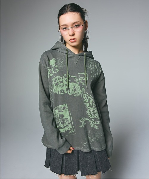 X-girlの魅力が詰まった主役級パーカーゆったり着用できる、オーバーサイズのメンズライクなパーカー。フロントに、X-girlのアーカイブグラフィックをコラージュしたデザイン。伸縮性のあるカットソー素材で、ストレスフリーな着心地。素材の加工は施さずに、グラフィックと色味でヴィンテージライクさを表現。配色ステッチもアクセントに。存在感がありながら、USED感のある落ち着いたカラーリングで着まわし力抜群。ミニスカートと合わせたMIX感のあるストリートスタイルがおすすめ。・透け感:なし・伸縮性:あり・生地の厚さ:普通・裏地:なし・長袖■X-girl(エックスガール)■取り扱い注意事項・プリント部分は永久的なものではなく、長期間の使用・摩擦により、徐々に剥がれや欠損が生じます。・アテンションタグ・洗濯表示を必ずご確認の上、ご使用下さい。・画像の商品は光の照射や角度により、実物と色味が異なる場合がございます。また表示のサイズ感と実物は若干異なる場合もございますので、予めご了承ください。・画像の商品はサンプルとなります。実際の商品と色味、仕様、加工、サイズ、素材等が若干異なる場合がございます。・生産の過程で、素材やサイズなどに若干の変更が出る可能性があります。・予約商品など一部商品につきましては、生産の都合上、お届け時期が前後する場合がございます。▼商品のお気に入り登録残り1点や再入荷、セールなどの通知を受け取ることができます。▼ブランドのお気に入り登録新作アイテムや再入荷、クーポンなどお得な情報をいち早く受け取ることができます。